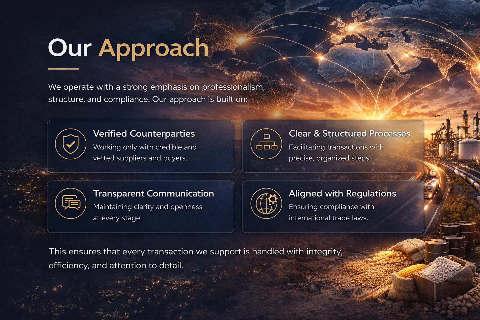 We understand the importance of credibility in global trade, and we work to ensure that every engagement reflects the standards expected in today’s international commodity markets.